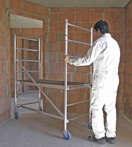 - Niewielkie wymiary rusztowania sprawiają, że możne je przesuwać przez otwory drzwiowe bez demontażu