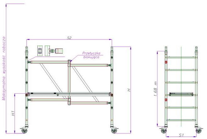 - Mała masa rusztowania ze względu na aluminiową konstrukcję
