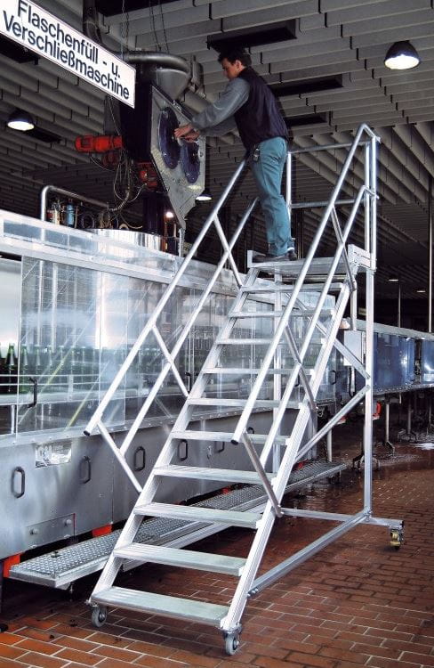 - Według normy EN ISO 14 122 od wysokości w pionie powyżej 4000 mm wymagany jest podest przejściowy.