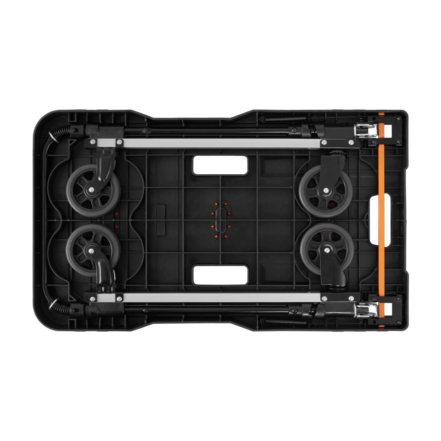 Niezawodny wózek magazynowy HIGHER Compact o udźwigu 150 kg - doskonały na zakupy, magazyn i przeprowadzki! Ten kompaktowy wózek o wymiarach po złożeniu 68 x 40 x 9 cm doskonale pomieści przedmioty o wadze do 150 kg. Dzięki swojemu poręcznemu rozmiarowi łatwo zmieści się w bagażniku samochodu, zapewniając Ci wygodę i mobilność.