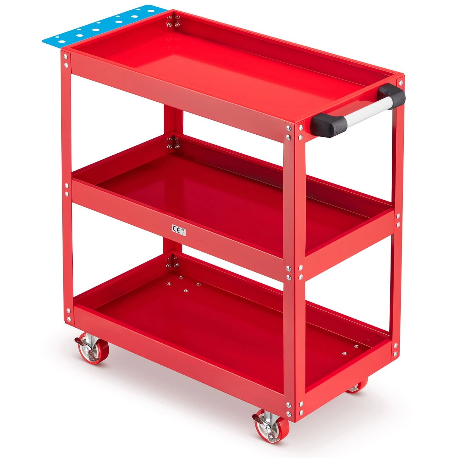 Idealnie nadaje się do wyposażenia serwisów i warsztatów. Dodatkowa półka na wkrętaki. Praktyczny uchwyt do manewrowania.