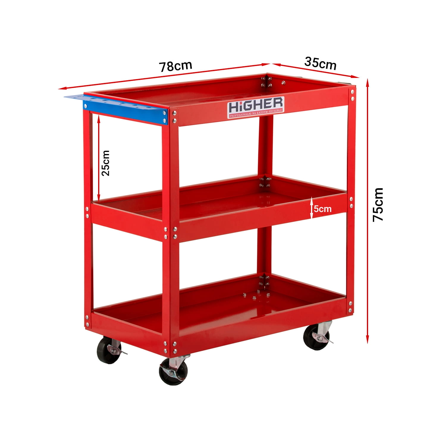 Wózek warsztatowy narzędziowy HIGHER z kołami wyposażonymi w hamulec